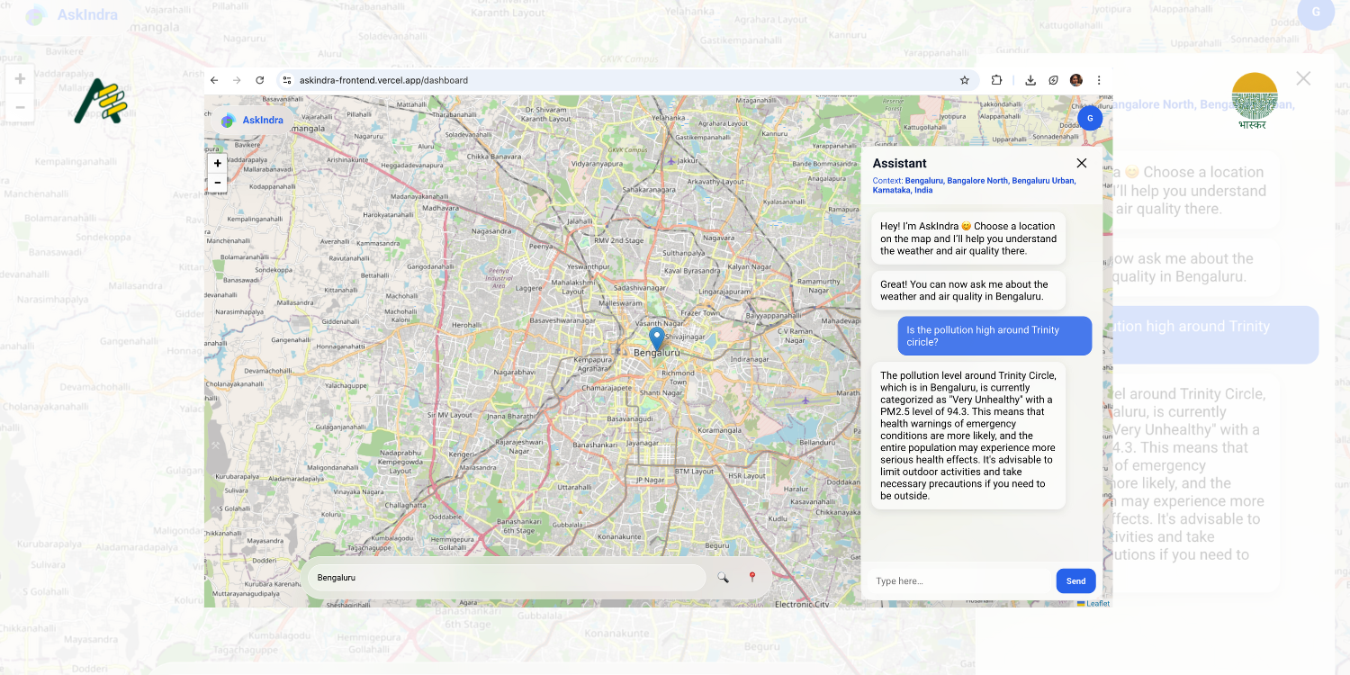 Trust is central to AskIndra’s design. The platform continuously ingests data from established air-quality and weather providers and normalises different standards into a consistent internal representation. Its AI layer interprets data rather than fabricating it, ensuring recommendations remain traceable and grounded.