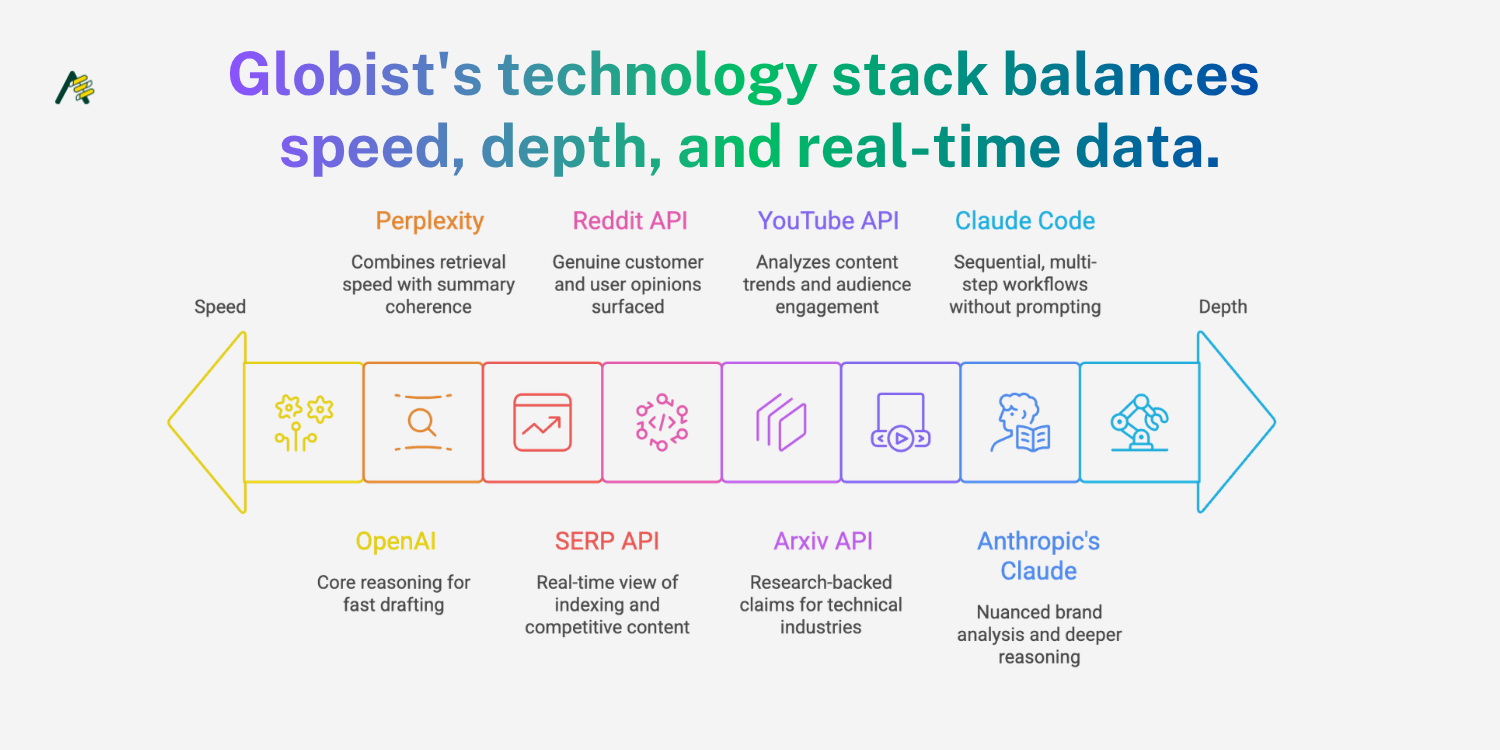 The technology stack behind Globist reflects a clear philosophy: use the best model for each task, connected by a coherent architecture, rather than defaulting to a single provider for everything.