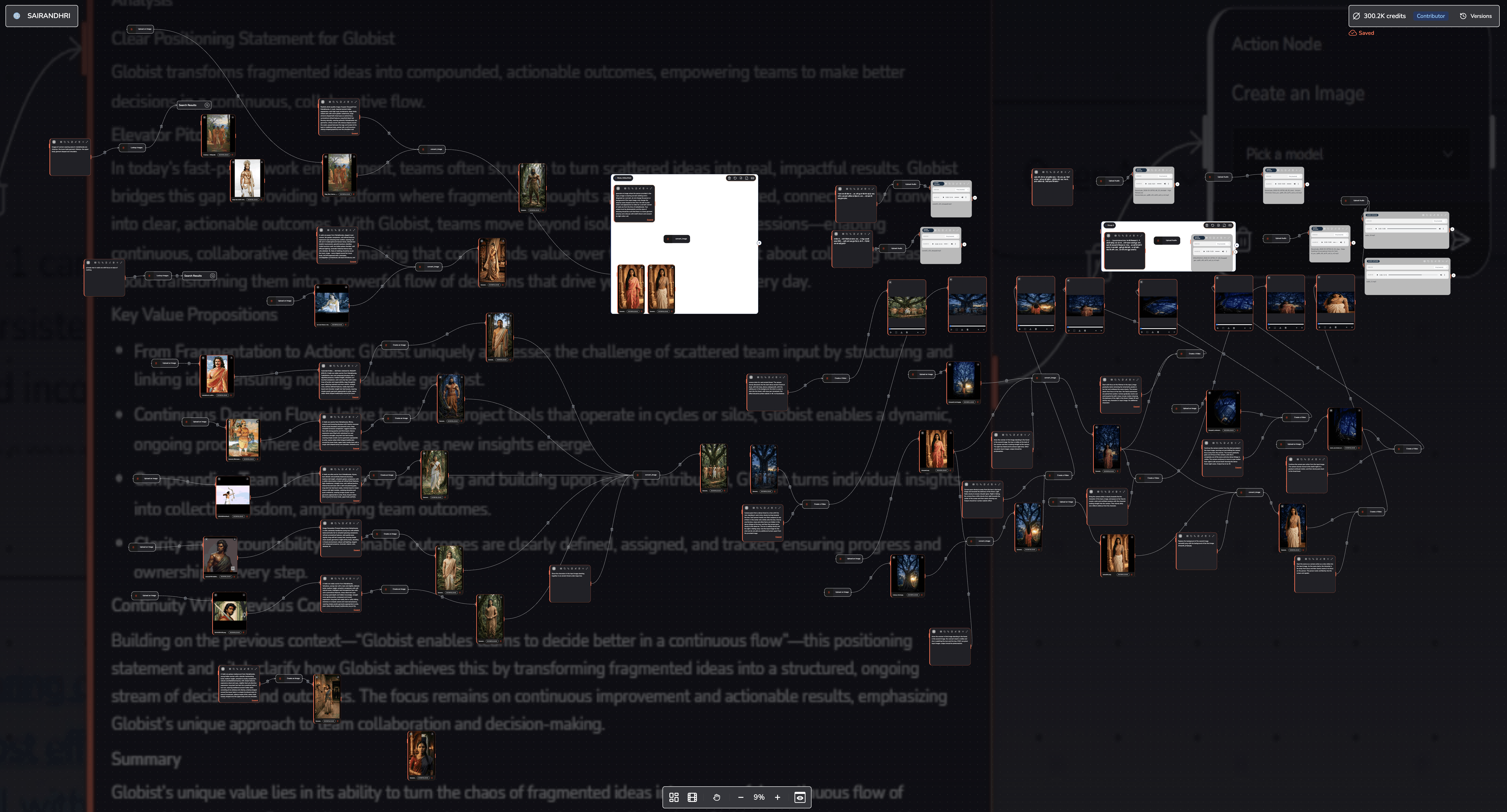 Each piece of work done on the canvas makes the next piece easier. Research nodes inform creative nodes. Creative nodes build on each other. Over time, the canvas becomes a record of how a team thinks - not just a place where deliverables are stored, but a living map of institutional intelligence. This creates what might be called workflow gravity: the longer a team uses a Globist canvas, the more valuable it becomes relative to starting elsewhere. Unlike a chat interface that resets with every session, the canvas retains context indefinitely.