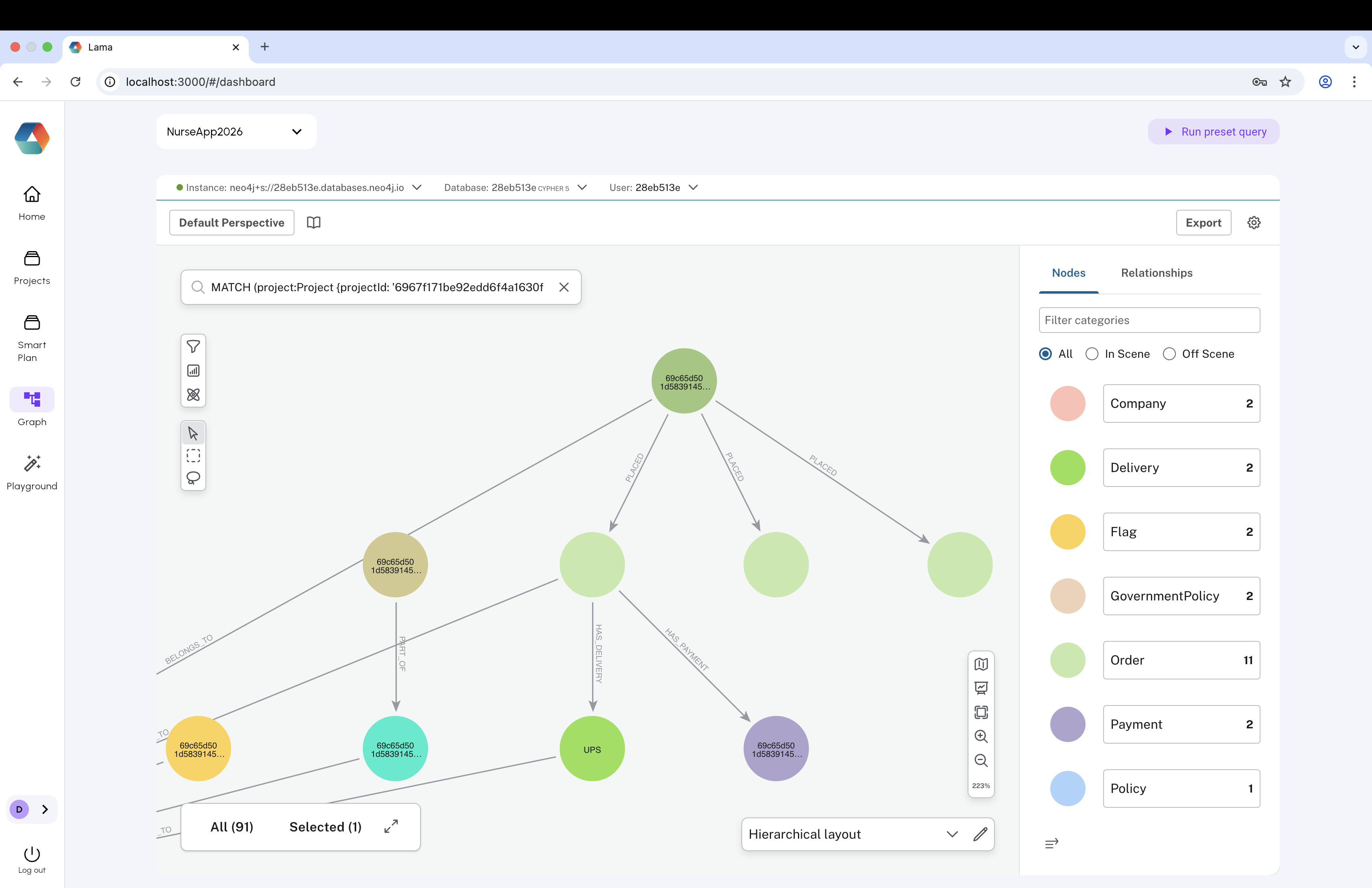 Neo4j powers a live knowledge graph of tickets, teams, companies, policies, and dependencies. The Bloom-powered graph interface lets users query relationships visually - surfacing blockers, ownership chains, and structural risks that flat dashboards cannot show. This layer proved to be one of Lama's most differentiated capabilities.