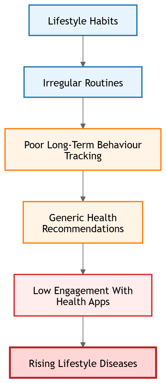 The problem therefore lies not only in providing health information but in transforming everyday lifestyle behaviors into meaningful, personalised, and actionable health insights.