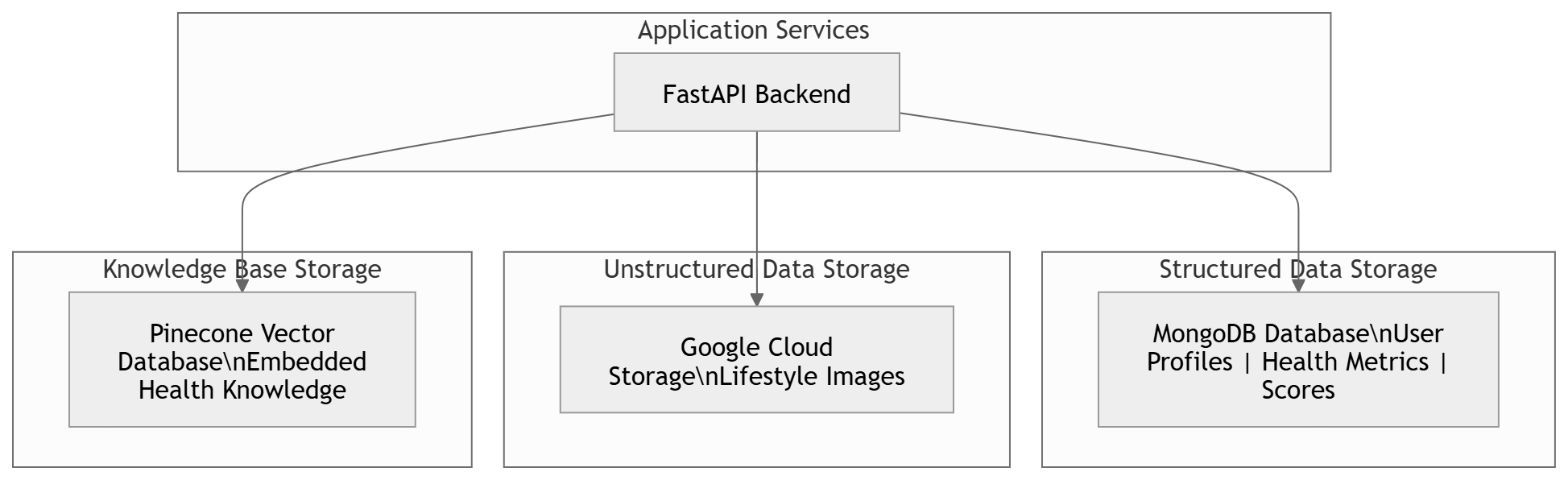 In addition to intelligent functionality, the platform was designed with strong consideration for user privacy and transparency. User data is securely stored using cloud storage and database infrastructure while maintaining strict policies that prevent the sharing of personal data with third-party entities. Informational transparency elements were also integrated into the user interface to help users understand how health scores, insights, and recommendations are generated.