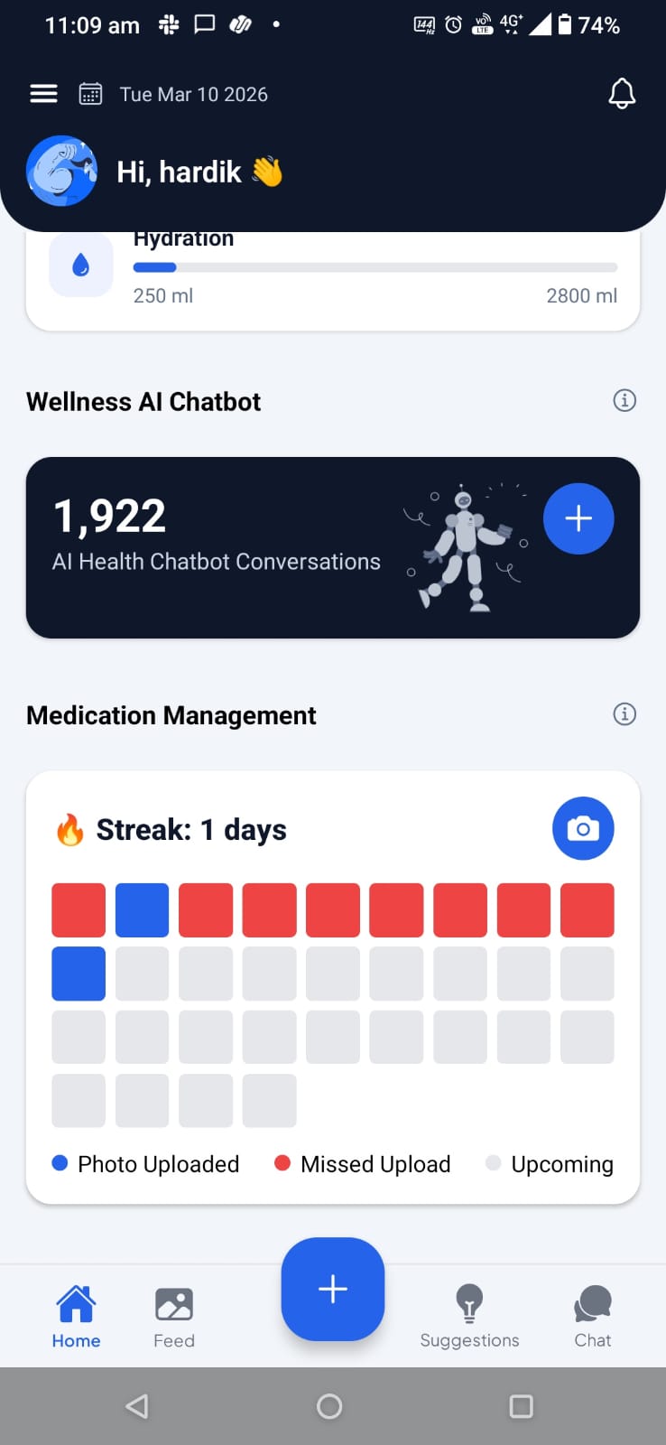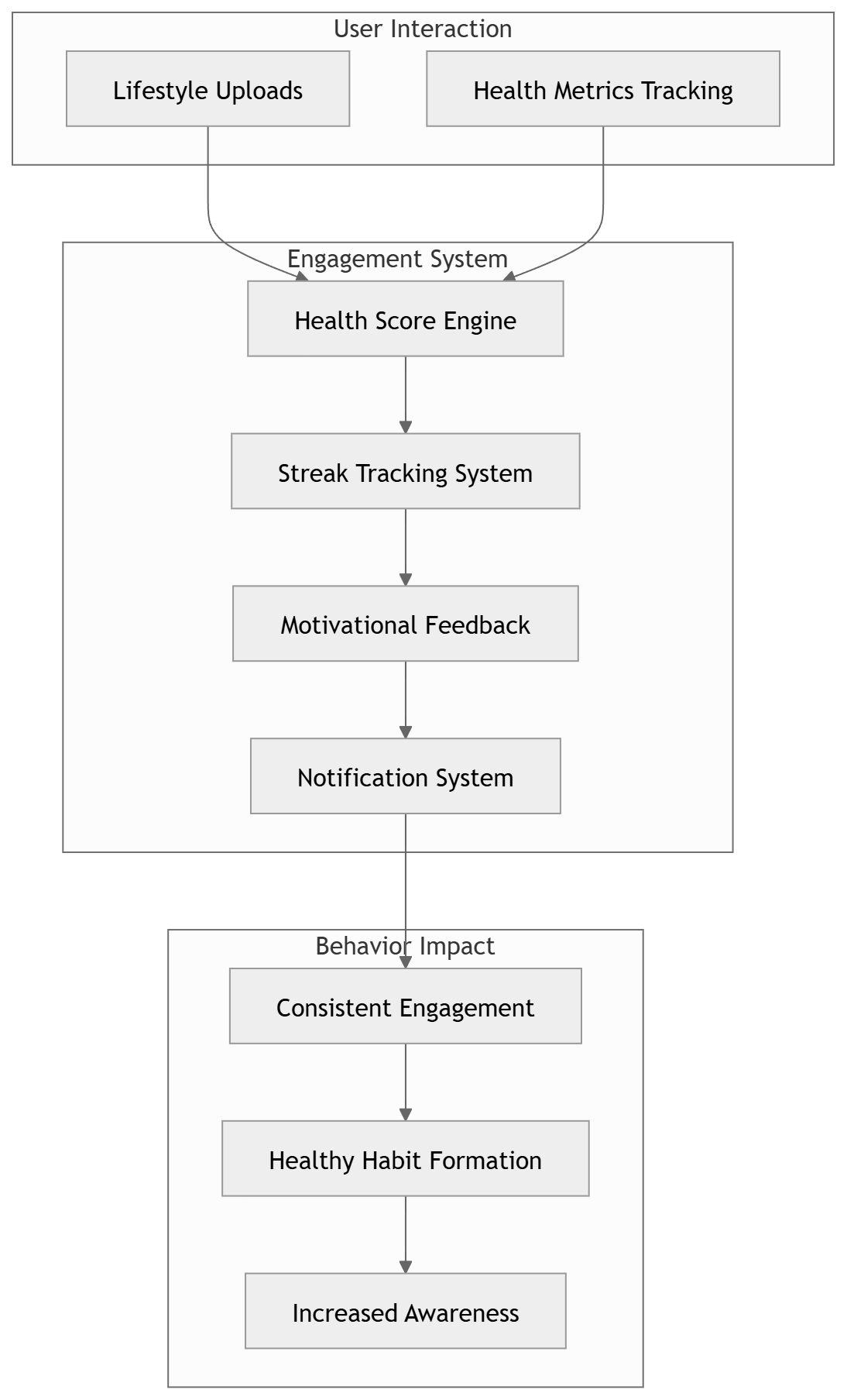 To encourage consistent participation, Arogyagram incorporates behavioral engagement mechanisms such as streak tracking and habit monitoring.