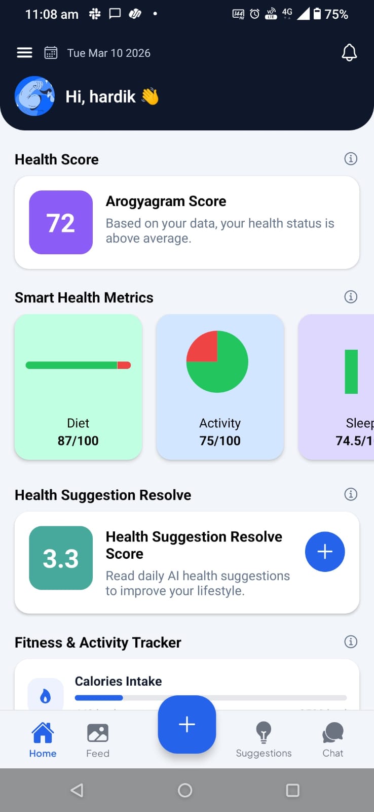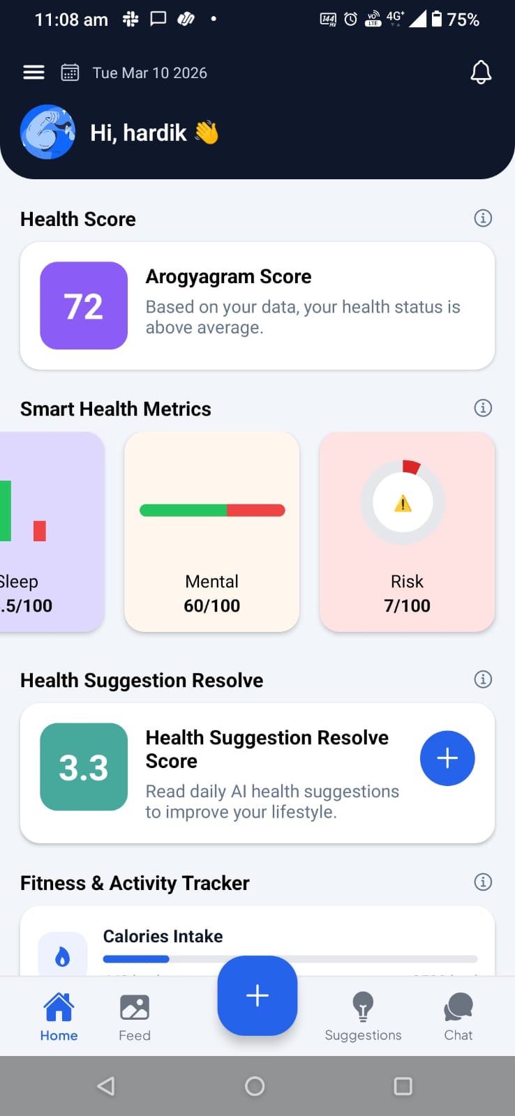 This project proposed and implemented a comprehensive AI-driven lifestyle intelligence system capable of transforming everyday lifestyle activities into actionable health insights. By integrating mobile technologies, computer vision models, behavioral analytics, and large language models, the Arogyagram platform provides a unified environment where users can track their lifestyle, understand their health patterns, and receive personalized guidance.