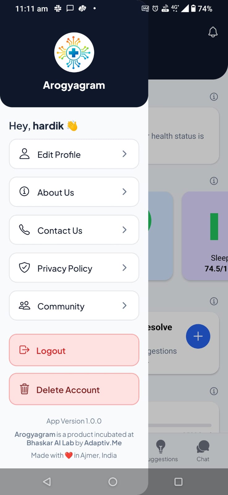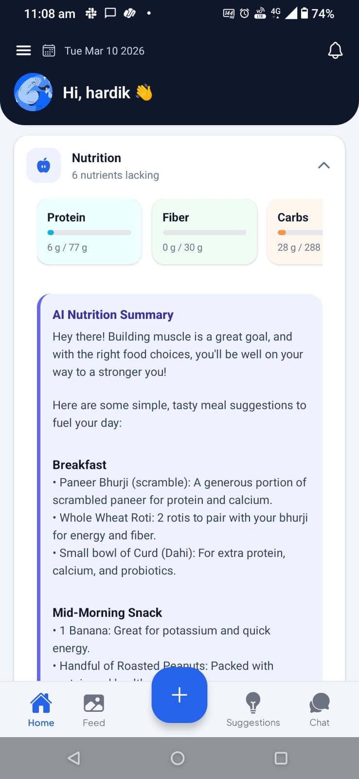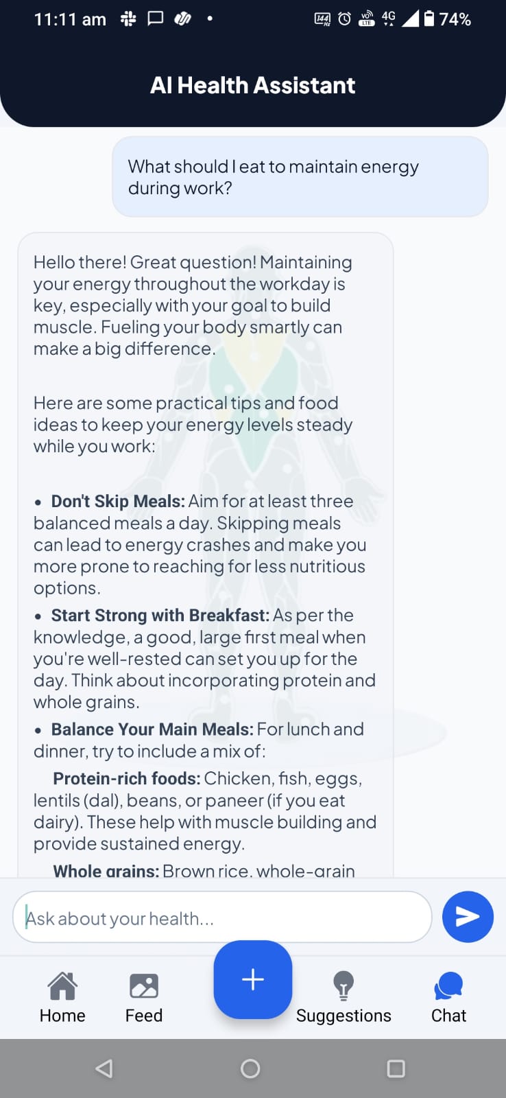 One of the core features of Arogyagram is the AI-driven recommendation engine that generates personalized daily health suggestions.